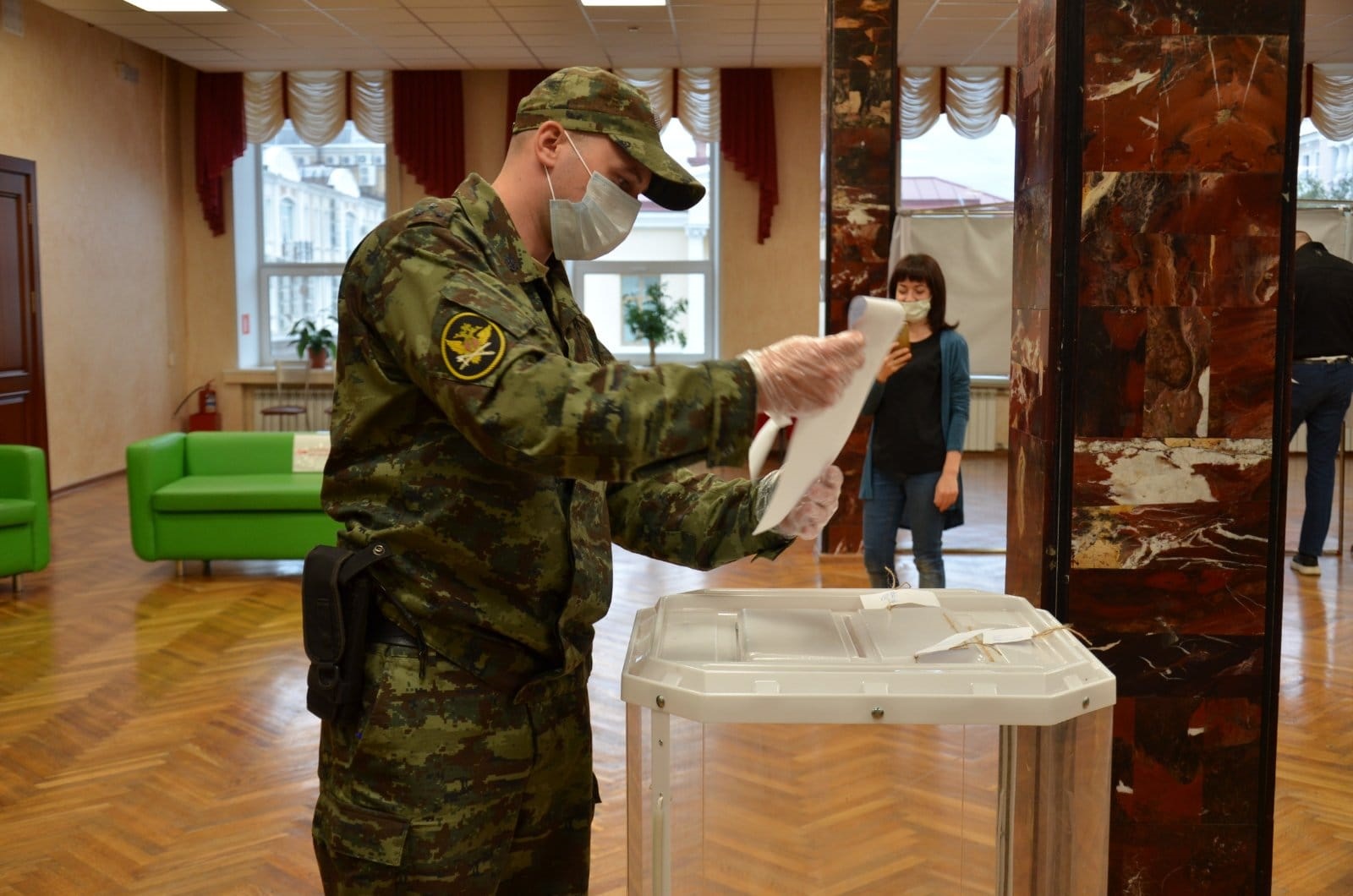 В Оренбурге около 11:00 избирательные участки сразу в нескольких районах города заполнили солдаты. Военные пошли голосовать целыми подразделениями.